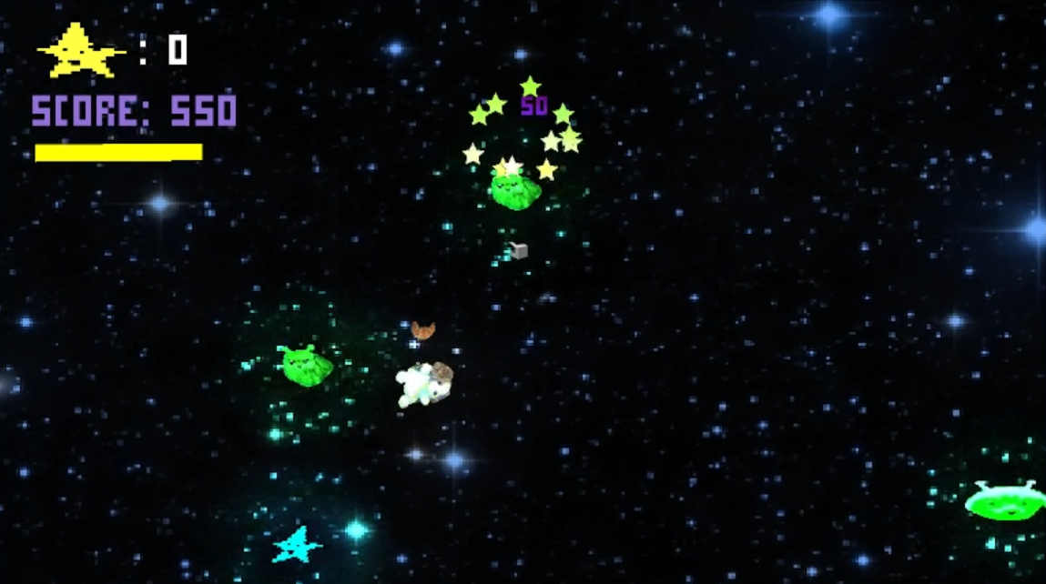 collect stars that run away from you and shoot silly dog aliens to gain points!