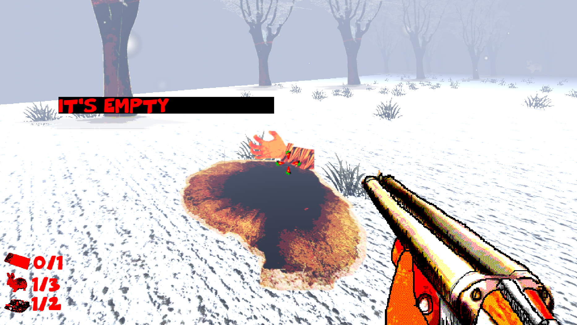 you are Morkof a mutated humanoid carrot who needs to protect his family by shooting bunnies in the dead of winter